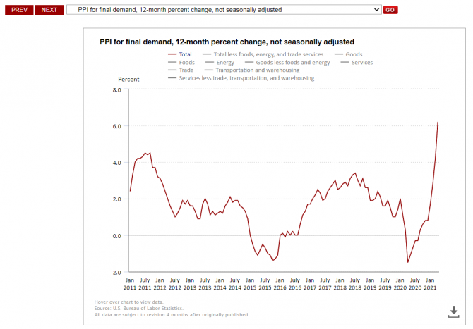 This respondent’s data will eventually be part of the monthly PPI release, which provides considerable detail on changes in selling prices for a wide range of industries and products. Here’s a look at 12-month changes in the PPI over the past decade. More charts and more details are available on the BLS website.
