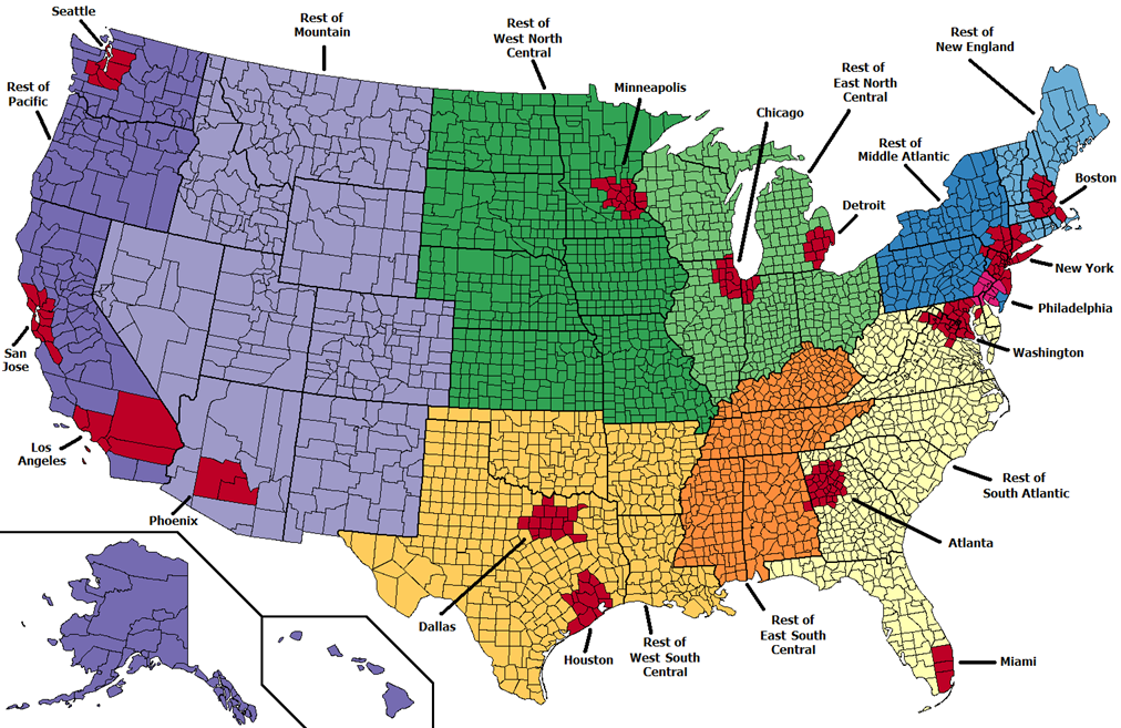 | Division: | New England | Middle Atlantic | South Atlantic | East South Central | West South Central | East North Central | West North Central | Mountain | Pacific |