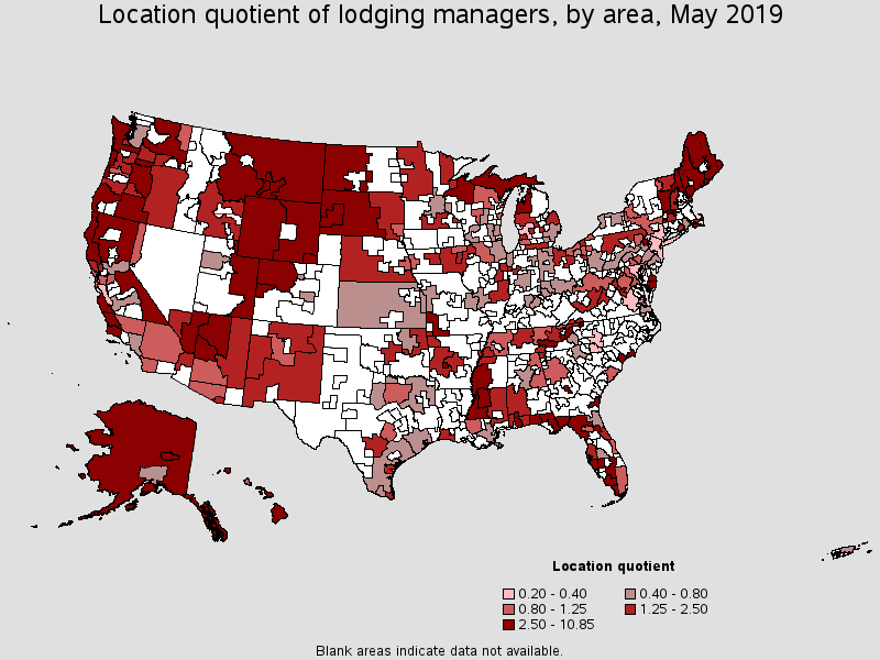 Metropolitan areas with the highest concentration of jobs and location quotients in this occupation: