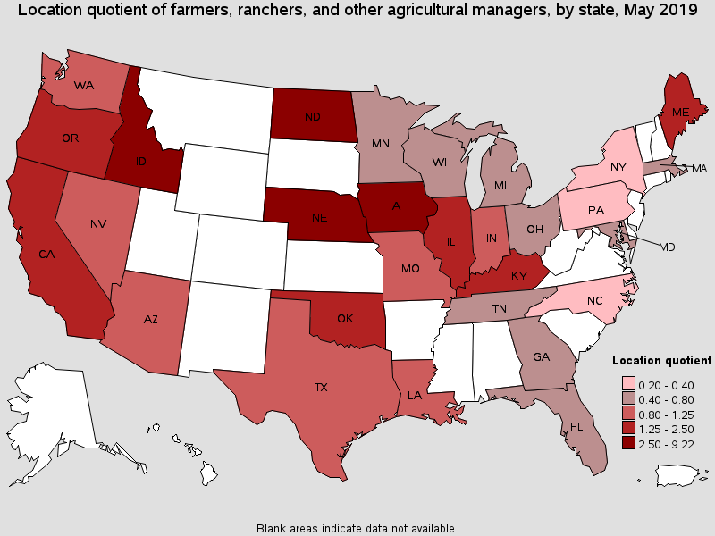 (9) The location quotient is the ratio of the area concentration of occupational employment to the national average concentration. A location quotient greater than one indicates the occupation has a higher share of employment than average, and a location quotient less than one indicates the occupation is less prevalent in the area than average.
