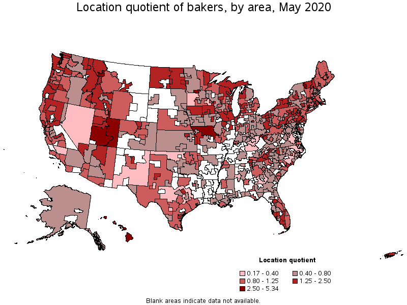 States and areas with the highest published employment, location quotients, and wages for Bakers are provided. For a list of all areas with employment in Bakers, see the Create Customized Tables function.