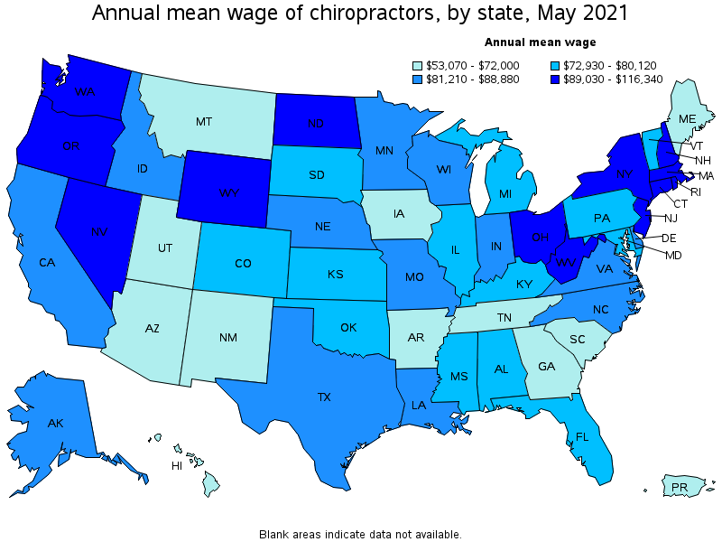 States and areas with the highest published employment, location quotients, and wages for Chiropractors are provided. For a list of all areas with employment in Chiropractors, see the Create Customized Tables function.