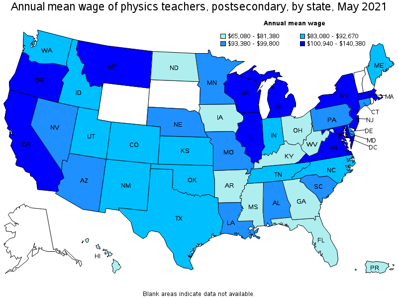 Top paying states for Physics Teachers, Postsecondary: