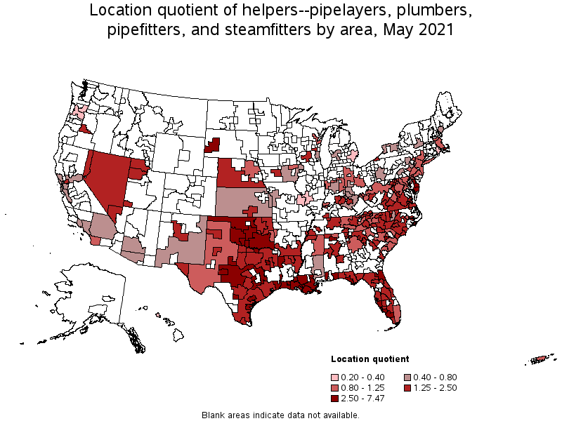 States and areas with the highest published employment, location quotients, and wages for Helpers--Pipelayers, Plumbers, Pipefitters, and Steamfitters are provided. For a list of all areas with employment in Helpers--Pipelayers, Plumbers, Pipefitters, and Steamfitters, see the Create Customized Tables function.