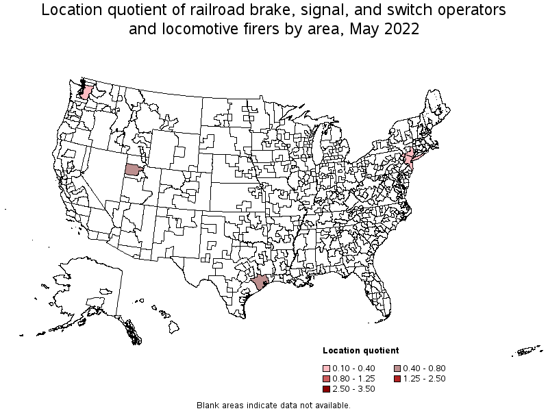 States and areas with the highest published employment, location quotients, and wages for Railroad Brake, Signal, and Switch Operators and Locomotive Firers are provided. For a list of all areas with employment in Railroad Brake, Signal, and Switch Operators and Locomotive Firers, see the Create Customized Tables function.