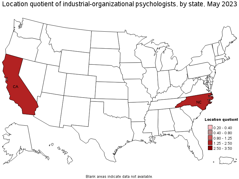 States and areas with the highest published employment, location quotients, and wages for Industrial-Organizational Psychologists are provided. For a list of all areas with employment in Industrial-Organizational Psychologists, see the Create Customized Tables function.