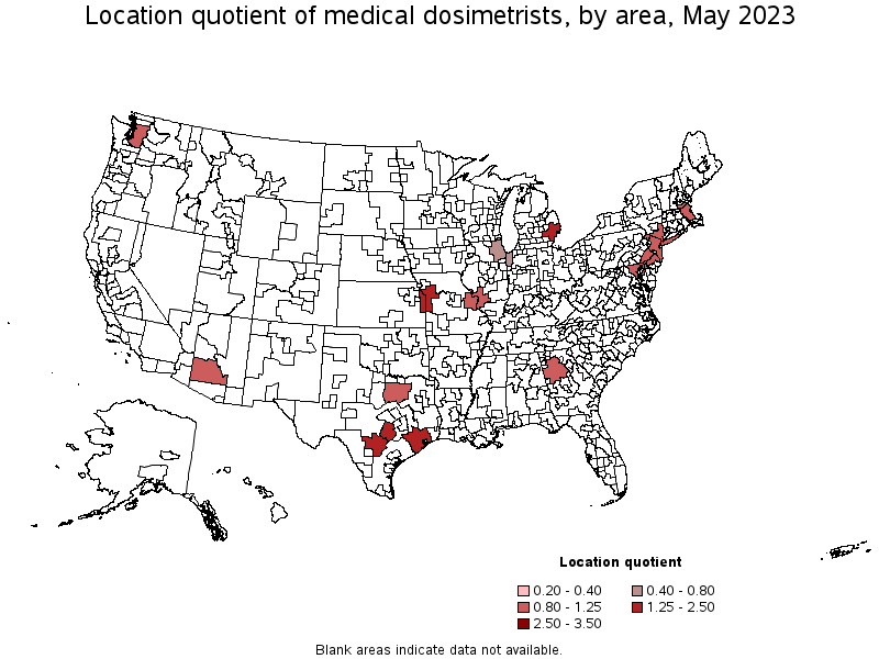 Metropolitan areas with the highest concentration of jobs and location quotients in Medical Dosimetrists: