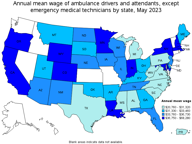 Top paying states for Ambulance Drivers and Attendants, Except Emergency Medical Technicians: