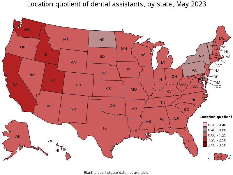 States with the highest concentration of jobs and location quotients in Dental Assistants:
