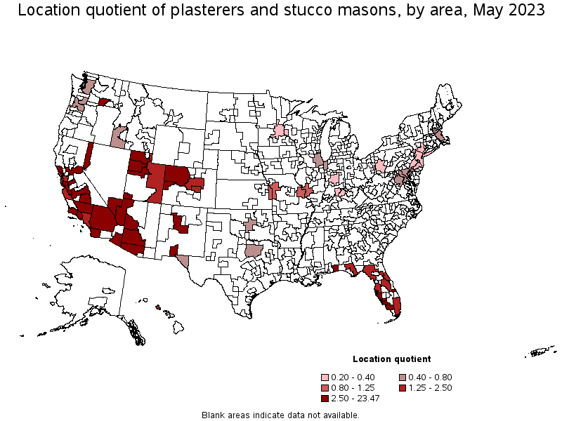 Metropolitan areas with the highest concentration of jobs and location quotients in Plasterers and Stucco Masons: