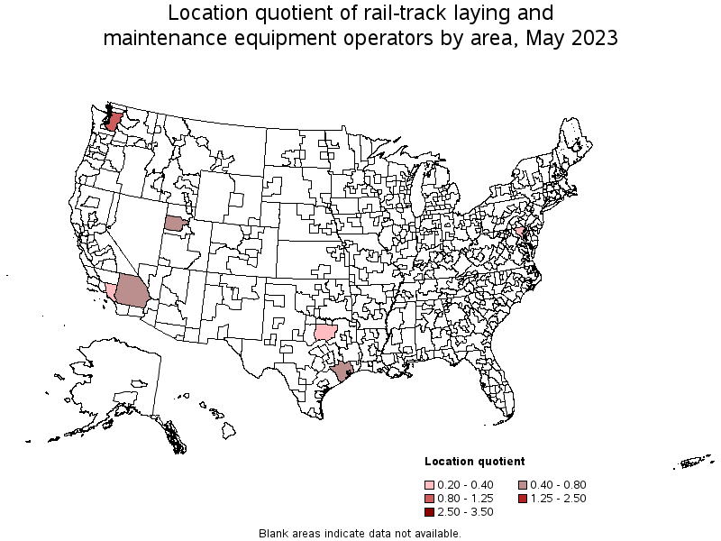 States with the highest concentration of jobs and location quotients in Rail-Track Laying and Maintenance Equipment Operators: