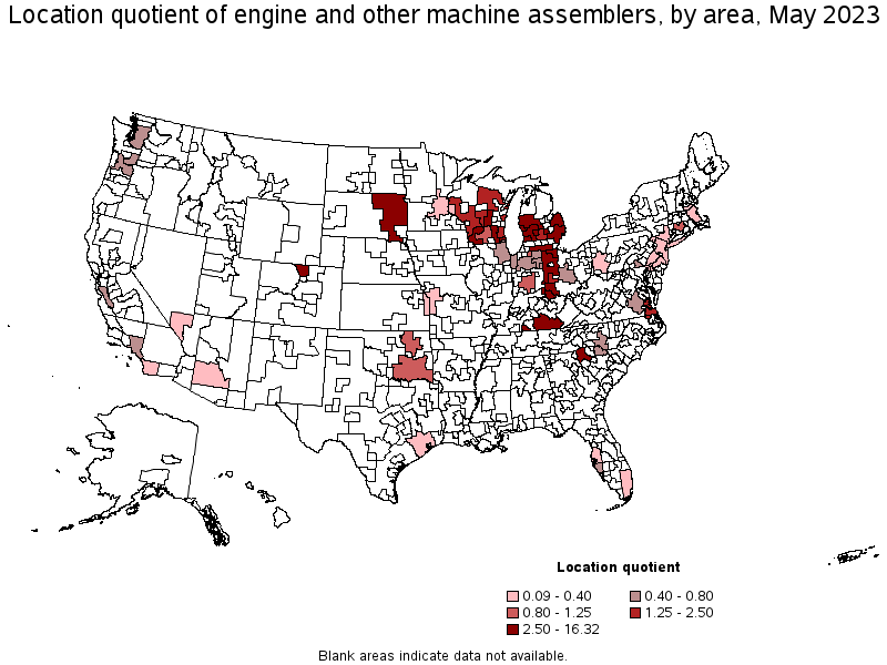 States with the highest concentration of jobs and location quotients in Engine and Other Machine Assemblers: