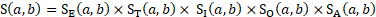 Where establishment a is an unobserved unit and establishment b is a potential donor, each component of the score function accounts for differences between a and b. The overall match score of the potential donor is as follows: