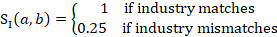 = score for difference in 6-digit NAICS industry between a and b