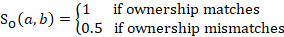 The score component reflecting differences in ownership is calculated as follows: