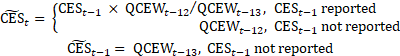 CES-SA defaults to using 10 years of data as an input to X-13ARIMA-SEATS. If a historical correction prior to the default 10 years was made during the annual benchmarking process, the start year of the input universe time series will be the earliest corrected year. For newly published series, a minimum of 3 years of data is required before the series can be processed by X-13ARIMA-SEATS. In some cases, simulated data or proxy data have been used to create the not seasonally adjusted sample histories necessary for seasonal adjustment of new or redefined series.