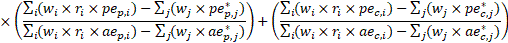 = average weekly hours of summary industry j; and