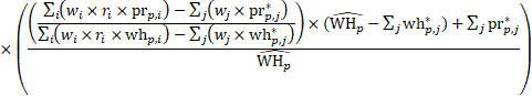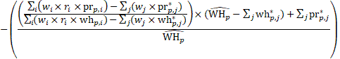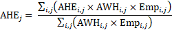average weekly hours of industry i in summary industry j; and