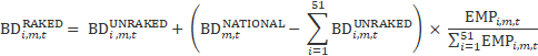 CES also develops national noncovered levels for March of the benchmark year, extrapolates these levels to each state (based on the state submitted values during the previous year), and provides the state-specific levels to the SWAs, as shown in equation 17.
