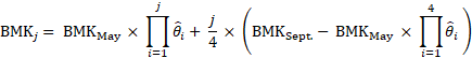 = number of months into the replacement period. For benchmark year t, Aprilt−1, j = 1.