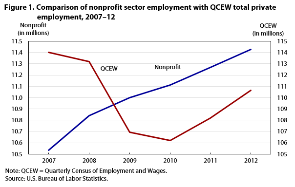 In October 2014, the Bureau of Labor Statistics (BLS) released a new data series on nonprofit organizations covering the period from 2007 through 2012. BLS frequently receives information requests for this segment of the labor force. This new data product offers important insights into this cross section of the economy.