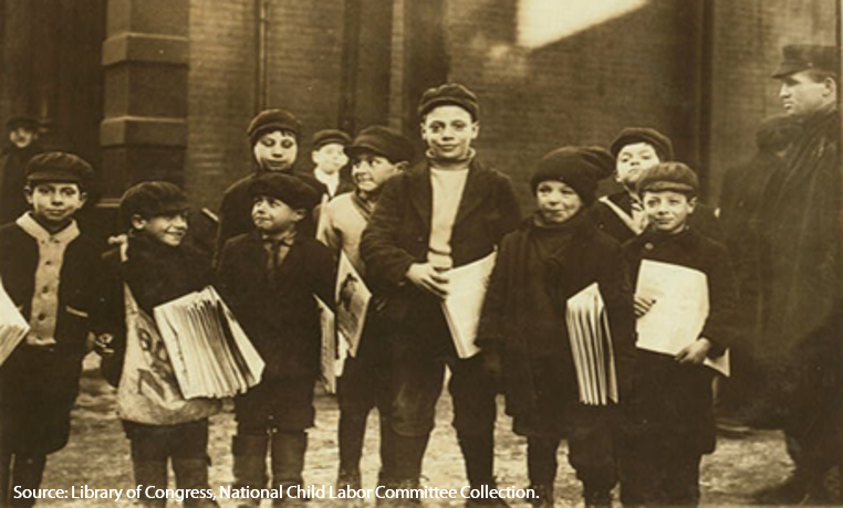 Even among children in the street trades, who operated most independently from their parents, one study of 106 newsboys found that nearly all of them gave their earnings to their mother or father.114 Consistent with legal thinking at the time, the belief of parents was that any money that the child earned was to first be provided to them. Once that was done, the parent might allocate a small amount to the child as an allowance to allow him or her to make a particular purchase. Children were incentivized to work, because in many cases, work meant money back for clothes, soda water, and other amusements.115 Among the newsies, one study conducted in St. Louis found that 87 percent of them “frequented movie picture shows and cheap theaters.”116 Allowing children, however, to have control of their money was seen by many parents as eliminating the distinctions between children and adults, which was thought to have ruinous consequences. Society, at the time, saw this notion as eliminating the hierarchical structure on which the parent-child relationship was based.117 Although children could earn money as grownups could, their role in the household was unchanged by their economic contributions. Society viewed them simply as an extra money-earning appendage of the mother or father. Just as the parents had a right to earn money from the labors of their own hands, they were entitled to the earnings of their offspring.
