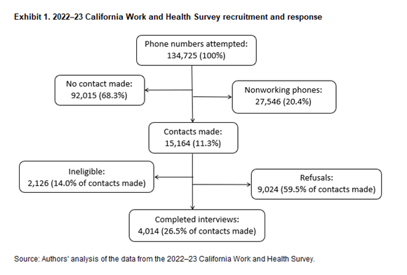 18 For more information about the CWHS survey design and content, including the survey instrument, see “California Work and Health Survey Technical Documentation,” California Labor Laboratory, University of California, San Francisco, September 12, 2023, https://calaborlab.ucsf.edu/technical-documentation.