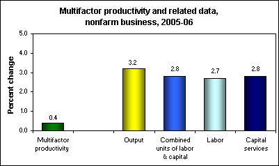 Bureau of Labor Statistics, U.S. Department of Labor, The Economics Daily, Multifactor productivity in nonfarm business, 2006 at https://www.bls.gov/opub/ted/2008/mar/wk4/art05.htm (visited December 18, 2025).