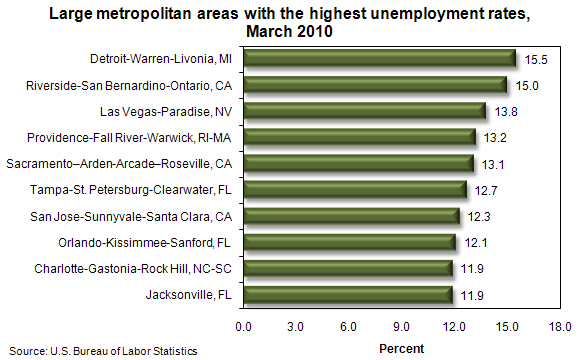 Bureau of Labor Statistics, U.S. Department of Labor, The Economics Daily, Unemployment in large metropolitan areas, March 2010 at https://www.bls.gov/opub/ted/2010/ted_20100430.htm (visited December 19, 2025).