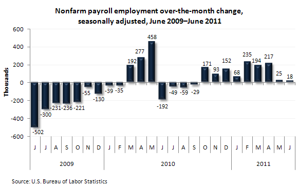 Bureau of Labor Statistics, U.S. Department of Labor, The Economics Daily, Payroll employment essentially unchanged in June 2011 at https://www.bls.gov/opub/ted/2011/ted_20110711.htm (visited December 18, 2025).