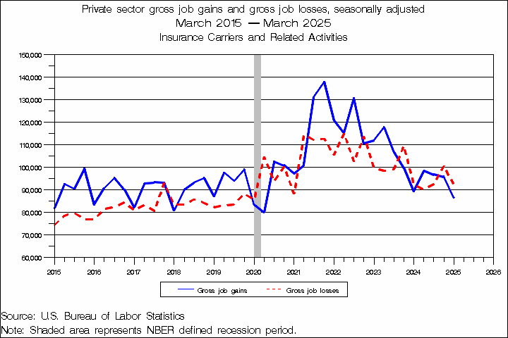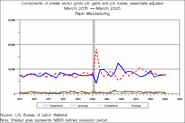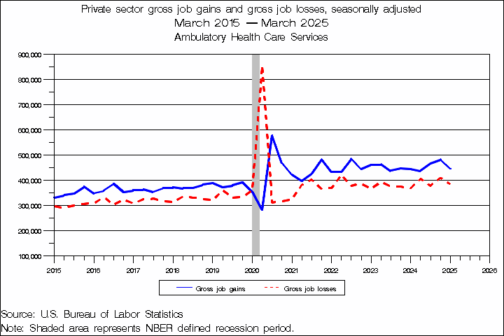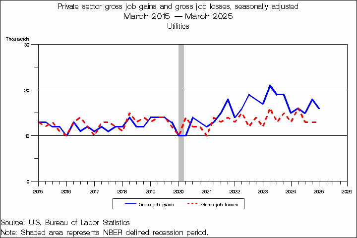 Chart 1. Annual private sector gross job gains and gross job losses (
