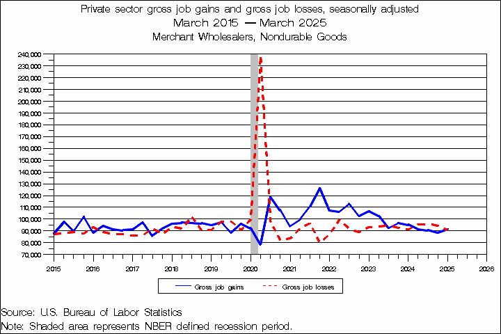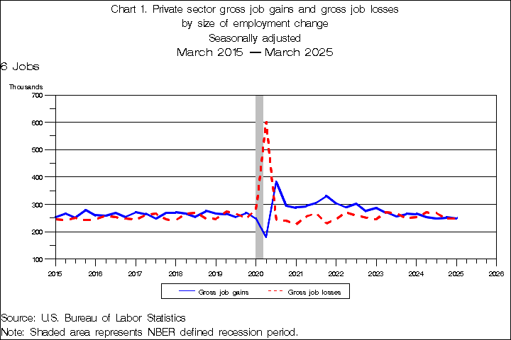 Chart 1. Private sector gross job gains and gross job losses, seasonally adjusted (