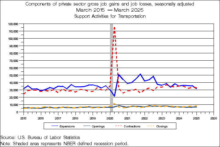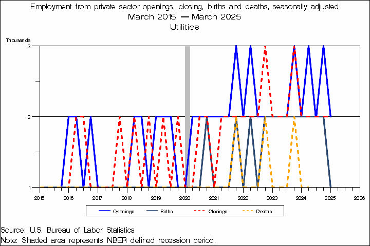 Chart 6. Employment from private sector openings, closings, births and deaths, seasonally adjusted (