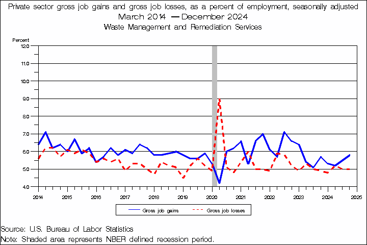 Chart 3. Annual private sector gross job gains and gross job losses, as a percent of total employment (