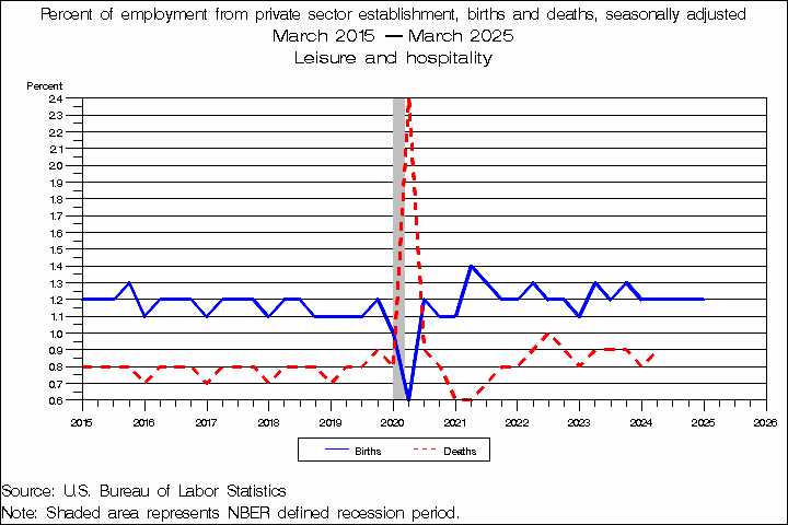 Chart 5. Percent of employment from private sector establishment births and deaths, seasonally adjusted (