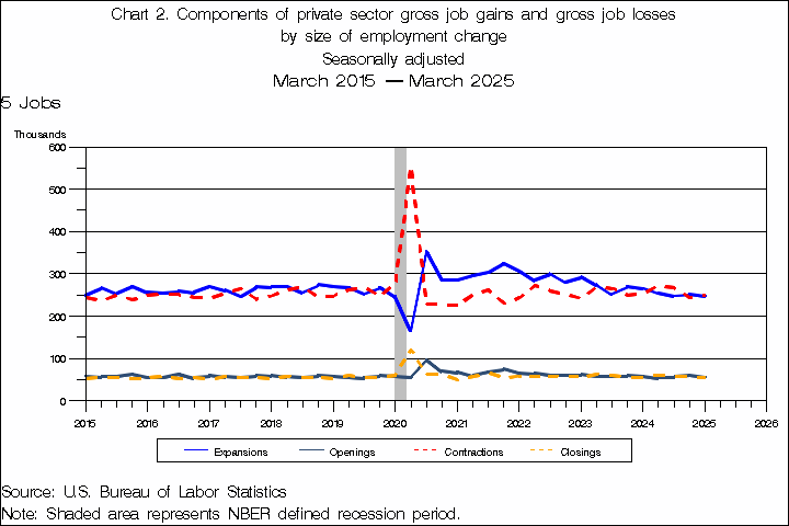 Chart 2. Components of private sector gross job gains and gross job losses, seasonally adjusted (