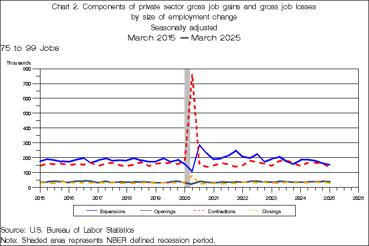 Chart 2. Components of private sector firm-level gross job gains and gross job losses, seasonally adjusted: dynamic method (